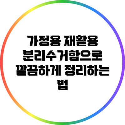 가정에서 재활용 분리수거함을 활용하면 환경을 보호하면서도 집 안을 깔끔하게 유지할 수 있어요. 각기 다른 재활용 품목을 효과적으로 분리하고, 비닐 배척 봉투를 활용하여 정리하는 방법을 실천해보세요. 이렇게 하면, 작은 행동이 모여 큰 변화를 만들어 낸답니다! 지금 바로 시작해볼까요?