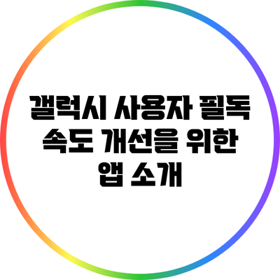 스마트폰이 느려지면 많은 사용자들이 불편함을 느끼게 됩니다. 특히, 갤럭시 사용자라면 속도를 향상시킬 수 있는 앱을 활용하는 것이 중요해요. 이 글에서는 속도를 개선할 수 있는 다양한 앱과 방법을 소개하고, 여러분이 갤럭시를 최적화하는 데 도움이 되는 내용을 제공할게요.