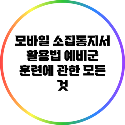 모바일 소집통지서는 예비군 훈련에 필요한 내용을 담고 있는 전자 통지서예요. 과거에는 종이 통지서를 통해 자료를 전달했지만, 현재는 스마트폰을 통해 보다 간편하게 확인할 수 있죠. 이로 인해 예비군들은 훈련 일정을 수시로 확인하고 준비할 수 있게 되었어요.