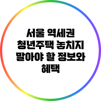 ✅ 서울 역세권 청년주택의 모든 혜택과 조건을 알아보세요!