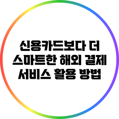 신용카드를 사용하면서 느끼는 불편함을 해소하고, 보다 경제적인 방법으로 해외에서 결제할 수 있는 여러 가지 방법이 있어요. 해외 결제 서비스는 여러분의 여행 경비를 줄여주면서, 더 나은 금융 경험을 선사할 수 있답니다. 따라서 다음 여행을 계획할 때는 꼭 이러한 서비스를 고려해보세요. 스마트한 선택으로 훨씬 더 즐거운 여행을 만끽할 수 있을 거예요!