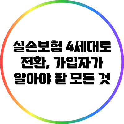 이번 포스팅에서는 실손보험의 1·2세대 가입자가 4세대로 전환해야 하는지에 대한 중요한 내용을 전달드릴게요. 현재 보험 시장의 변화와 더불어 가입자들은 선택의 기로에 서 있으며, 제대로 된 정보 없이 결정하기에 어려움을 겪고 있습니다. 그러므로 이번 글을 통해 전환의 필요성과 장단점을 살펴보며, 결정에 도움을 드리고자 합니다.