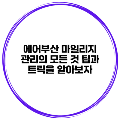 에어부산 마일리지 관리의 팁을 지금 바로 확인하세요!