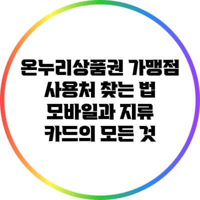 온누리제품권 가맹점의 사용처를 찾는 방법은 여러 가지가 있어요. 공식 웹사이트, 모바일 앱, 고객센터를 통해 사용처를 쉽게 확인할 수 있답니다. 온누리제품권을 통해 지역 경제에 기여하면서, 다양한 할인 혜택도 누려보세요.