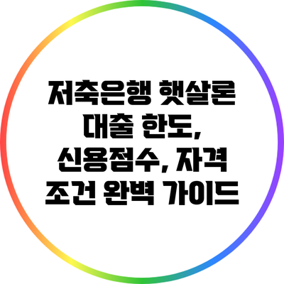 저축은행 햇살론 대출: 한도, 신용점수, 자격 조건 완벽 설명서