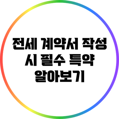 전세 계약서를 작성할 때 일반적으로 포함되는 조항에 추가하여, 필수적으로 포함해야 할 특약들이 있어요. 이를 통해 예기치 못한 상황에서도 법적 보호를 받을 수 있답니다.