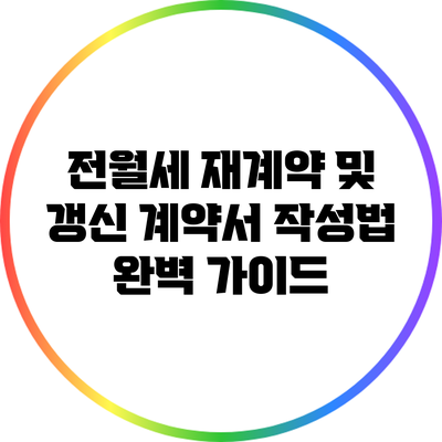 전세 계약을 재계약하려면 몇 가지 중요한 사항을 기억해야 해요. 전월세 재계약은 단순히 새로운 계약서를 작성하는 것이 아니라, 법적 효력을 갖춘 문서로써 주의 깊게 작성해야 해요. 이번 블로그 포스팅에서는 전세 재계약 및 갱신 계약서의 작성법에 대해 깊이 있게 알아보도록 할게요.