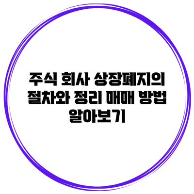 정리 매매는 상장폐지 전에 주식 투자자들이 주식을 매도할 수 있는 특별한 매매 기간이에요. 일반적으로 상장폐지 결정이 사전 통지되면 정리 매매가 시작되고, 기간이 한정되어 있기 때문에 투자자들은 이 기간 내에 매도를 고려해야 해요.
