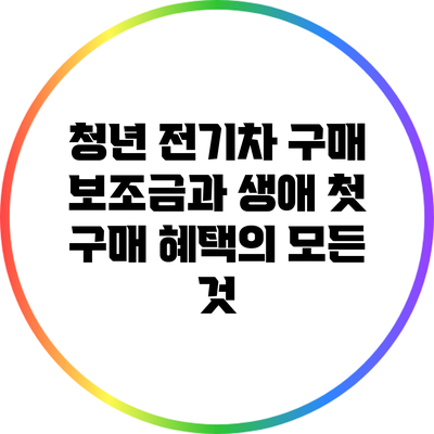 생애 첫 전기차 구매 혜택은 전기차를 처음 구매하는 사람들에게 제공되는 특별한 혜택이에요. 이 혜택은 청년들에게 더욱 신경 쓰고 있어요.