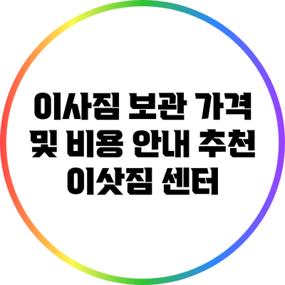 이사짐 보관 가격 및 비용 안내: 추천 이삿짐 센터