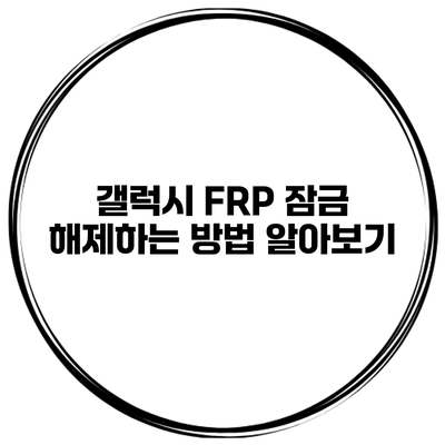 ✅ 갤럭시 FRP 잠금 해제 방법을 지금 바로 알아보세요.