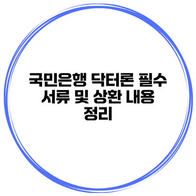 ✅ 국민은행 닥터론의 필수 서류 및 상환 내용을 간편하게 알아보세요.