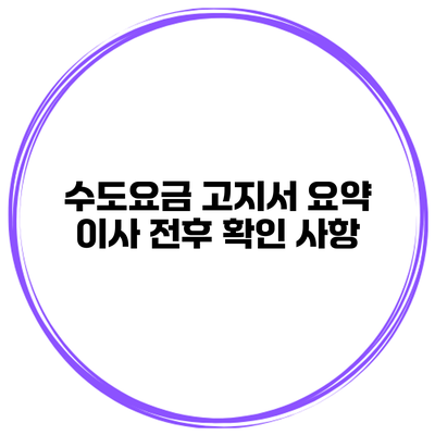 이사 전에는 다음과 같은 확인사항들이 있어요. 이는 수도요금을 정확히 관리할 수 있도록 도와줘요.