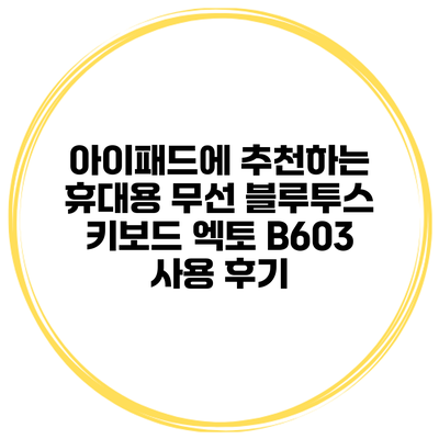 아이패드를 더욱 효율적으로 사용하고 싶다면 블루투스 키보드는 필수 아이템이죠. 이번 포스팅에서는 휴대용 무선 블루투스 키보드인 엑토 B603의 사용 후기를 자세히 살펴보겠습니다. 이 키보드는 어떻게 아이패드와 잘 어울리는지 알아보세요!