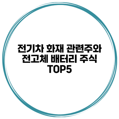 전기차 시장이 급격히 성장함에 따라, 많은 투자자들이 이 분야에 주목하고 있어요. 그러나 전기차의 화재 사고와 같은 이슈는 여전히 해결해야 할 중요한 과제로 남아 있죠. 여기에서는 전기차 화재 관련 주식과 전고체 배터리 주식을 포함한 TOP5 추천 종목을 살펴보겠습니다.