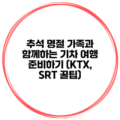 여러분, 추석 명절이 다가오면 많은 가족들이 함께 여행을 떠나는 것이죠. 특히 기차 여행은 편리하고 빠르며 즐거운 추억을 만드는 최고의 방법이에요. 이 글에서는 KTX와 SRT를 이용한 가족 여행 준비 방법과 꿀팁을 자세히 소개할게요.