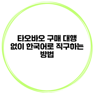 해외 쇼핑의 매력은 이루 말할 수 없죠. 특히 중국의 대형 쇼핑몰인 타오바오에서는 한국에서 만나기 힘든 다양한 상품을 쉽게 구입할 수 있어 많은 사람들이 직구를 시도하고 있습니다. 하지만 타오바오를 직접 이용하기란 쉽지 않은 일입니다. 다행히도, 한국어로 직구할 수 있는 방법이 있으니, 바로 알아보도록 할게요.