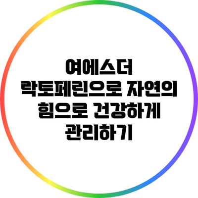 여에스더 락토페린으로 자연의 힘으로 건강하게 관리하기