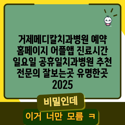 ✅ 거제메디칼치과병원의 진료시간과 예약 방법을 알아보세요.