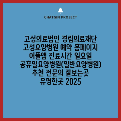 ✅ 고성요양병원의 예약 절차와 진료시간을 자세히 알아보세요.