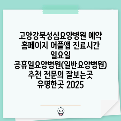 ✅ 고양강북성심요양병원의 최신 진료 정보를 지금 확인해 보세요.