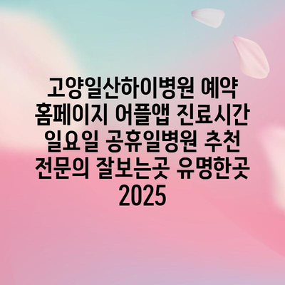✅ 고양일산하이병원의 진료시간과 예약 방법을 자세히 알아보세요.