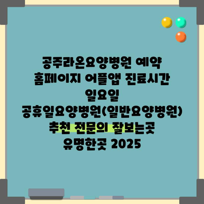 공주라온요양병원의 진료시간과 예약 방법을 지금 알아보세요!