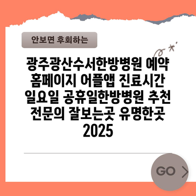 ✅ 광주광산수서한방병원 진료시간과 예약 방법을 알아보세요!