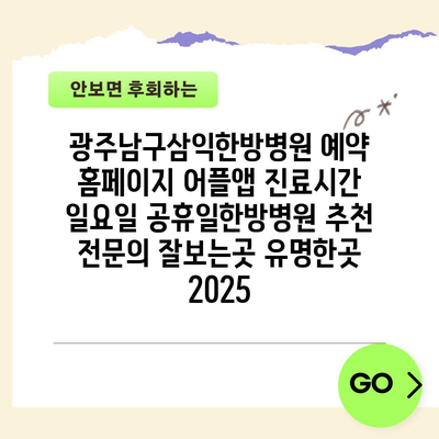 ✅ 광주남구삼익한방병원의 진료시간과 예약 정보 지금 바로 확인하세요!