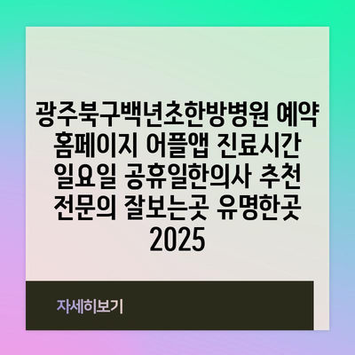✅ 광주북구백년초한방병원의 진료시간과 예약 방법을 지금 바로 알아보세요!