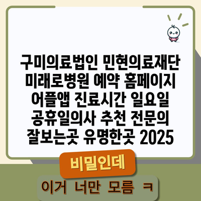 ✅ 민현의료재단 미래로병원 예약 방법을 지금 바로 알아보세요.