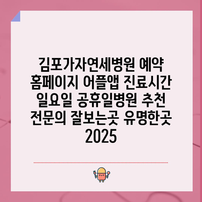 ✅ 2025년 김포가자연세병원의 진료시간과 예약 방법을 알려드립니다.