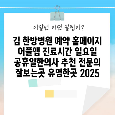 김 한방병원 예약 홈페이지 어플앱은 2025년에도 많은 환자들에게 편리함을 제공할 것입니다.