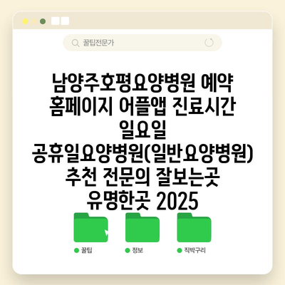 ✅ 남양주호평요양병원의 진료시간과 예약 방법을 지금 바로 알아보세요.