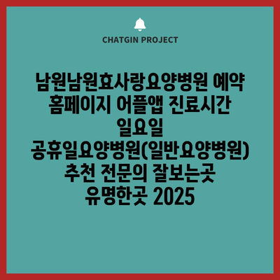 ✅ 남원남원효사랑요양병원의 진료 시간과 예약 방법을 자세히 알아보세요.