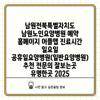 ✅ 남원노인요양병원의 자세한 진료시간과 예약 방법을 알아보세요.