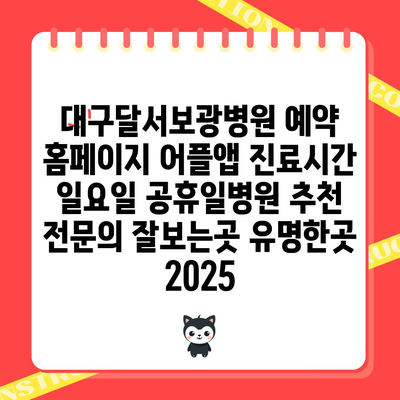 대구달서보광병원 예약 홈페이지 어플앱 진료시간 일요일 공휴일병원 추천 전문의 잘보는곳 유명한곳 2025