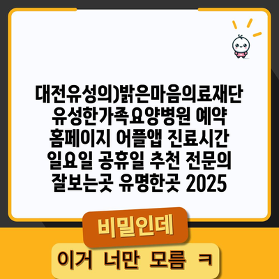 ✅ 유성한가족요양병원의 진료시간과 예약 방법을 지금 바로 알아보세요!