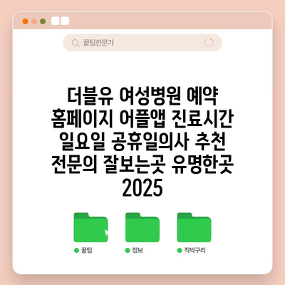 더블유 여성병원 예약 홈페이지 어플앱 진료시간 일요일 공휴일의사 추천 전문의 잘보는곳 유명한곳 2025