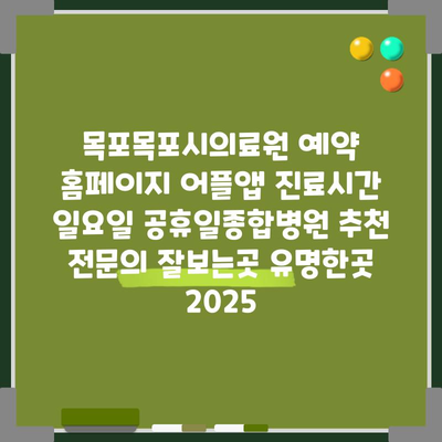 목포목포시의료원 예약 홈페이지 어플앱 진료시간 일요일 공휴일종합병원 추천 전문의 잘보는곳 유명한곳 2025