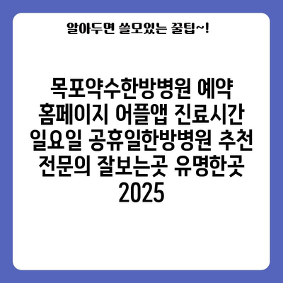 ✅ 목포약수한방병원의 진료 시간과 예약 방법을 알아보세요.