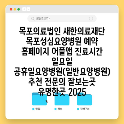 목포의료법인 새한의료재단 목포성심요양병원 예약 홈페이지 어플앱 진료시간 일요일 공휴일요양병원(일반요양병원) 추천 전문의 잘보는곳 유명한곳 2025