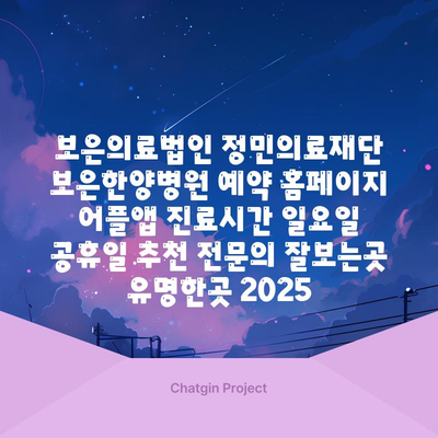 ✅ 보은한양병원의 진료 시간과 예약 방법을 알아보세요.