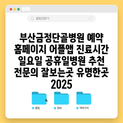✅ 부산금정단골병원의 진료 시간과 예약 방법을 쉽게 알아보세요.