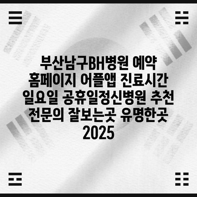 ✅ 부산 남구 BH병원의 진료 시간과 예약 방법을 알아보세요.