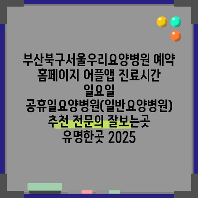 ✅ 서울우리요양병원의 예약 방법과 진료 시간을 알아보세요.