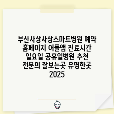 ✅ 부산사상스마트병원의 진료시간과 예약 방법을 자세히 알아보세요.