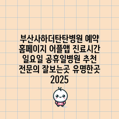 ✅ 부산사하더탄탄병원의 진료시간 및 예약 방법을 알아보세요.