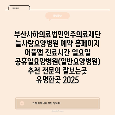 부산사하의료법인인주의료재단 늘사랑요양병원 예약 홈페이지 어플앱 진료시간 일요일 공휴일요양병원(일반요양병원) 추천 전문의 잘보는곳 유명한곳 2025