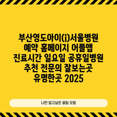✅ 부산영도아이서울병원의 진료시간과 예약 방법을 자세히 알아보세요.